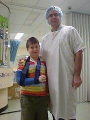 It went well. The doc says they didn’t need to take any cells from his pelvis. They got some from the other bone in his forearm (ulna). The damged bone (radius) is wired together again now, and will start on the the Pamindronate therapy in a couple of weeks.