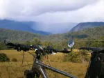 On the way back to the car I stopped one more time for a great view of where I had ridden. The track pretty much followed the top of the range in this picture.
